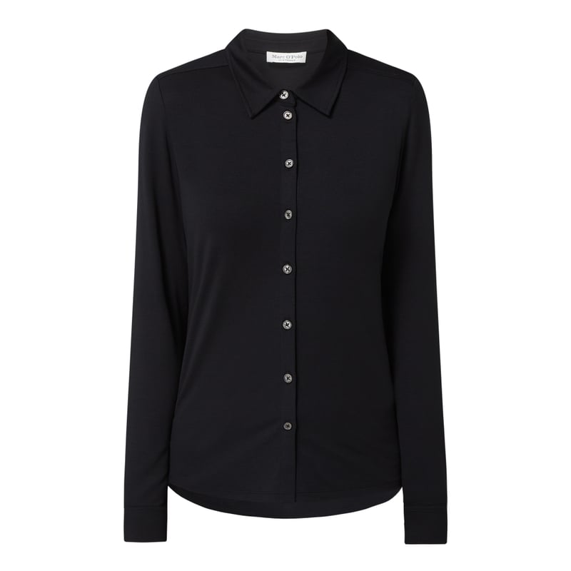 Bluzka damska MARC O’POLO, Mieszanka wiskozy i elastanu (LENZING™ ECOVERO™) , Prosty krój, Dżersej, Wykładany kołnierz, Listwa guzikowa, Długie rękawy , Mankiety zapinane na 1 guzik, Długość tyłu w rozmiarze S: 61 cm, Długość rękawa w rozmiarze S: 65 cm