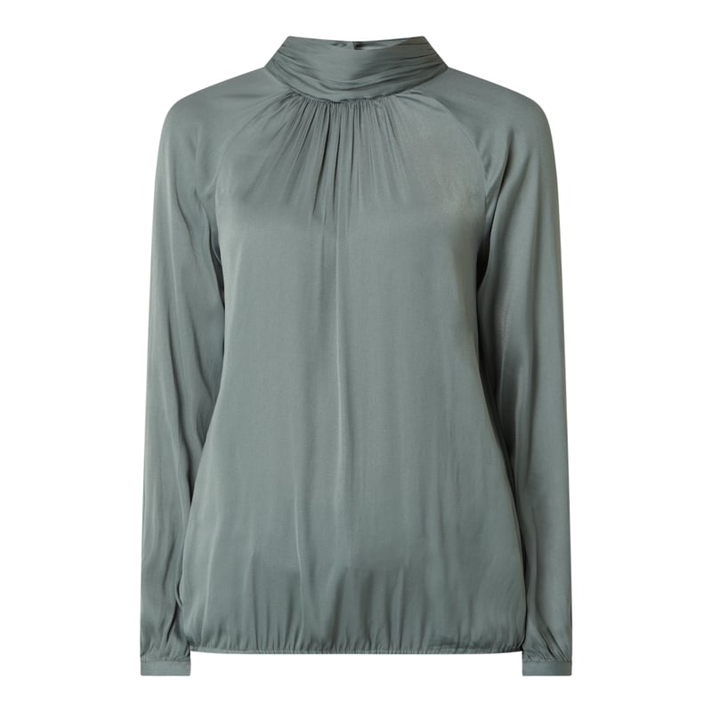 Bluzka damska soyaconcept , Mieszanka materiałów z poliestrem z recyklingu , Luźny krój, Efekt połyskiwania , Stójka, Długie rękawy raglanowe , Elastyczny dół , Marszczenia , Długość tyłu w rozmiarze S: 64 cm
