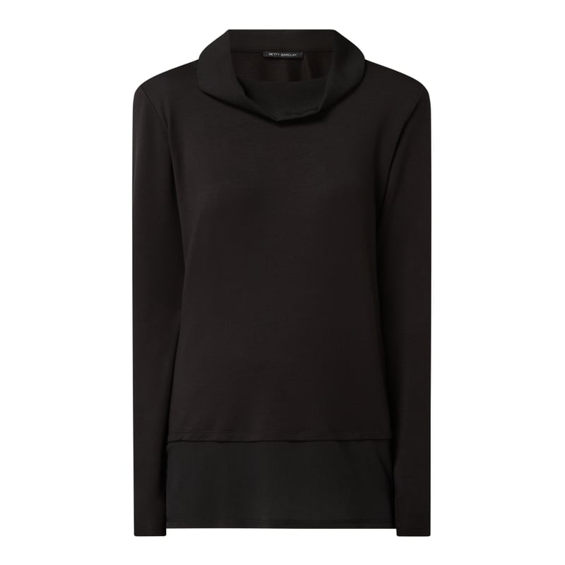 Bluzka damska Betty Barclay, Mieszanka modalu i elastanu , Prosty krój , Efekt dwóch warstw , Wykładany kołnierz, Długie rękawy , Dół w kontrastowym kolorze, Długość tyłu w rozmiarze 36: 71 cm, Długość rękawa w rozmiarze 36: 63 cm