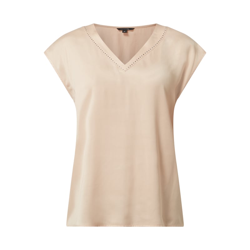 Bluzka damska comma , Mieszanka materiałów z dodatkiem wiskozy , Taliowany krój , Dekolt w serek , Krótkie rękawy , Kamienie stras , Długość tyłu w rozmiarze 36: 59 cm