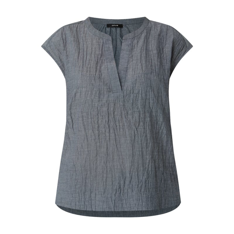 Bluzka damska OPUS, Mieszanka bawełny i elastanu , Luźny krój , Kołnierz z lamówką , Krótkie, ukośnie skrojone rękawy , Drobne marszczenia z tyłu , Długość tyłu w rozmiarze 36: 62 cm