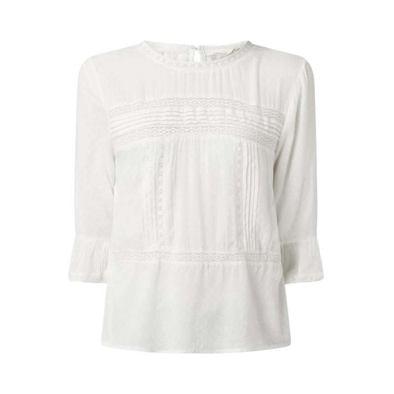 Bluzka damska ONLY, Czysta wiskoza, Prosty krój, Okrągły dekolt , Rękaw o dł. 3/4, Szydełkowa koronka, Wycięcie w kształcie łezki z tyłu , Długość tyłu w rozmiarze 36: 54 cm