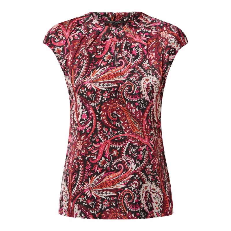 Bluzka damska comma , Krepa , Taliowany krój , Wzór ornamentalny , Stójka , Plisy , Długość tyłu w rozmiarze 36: 61 cm