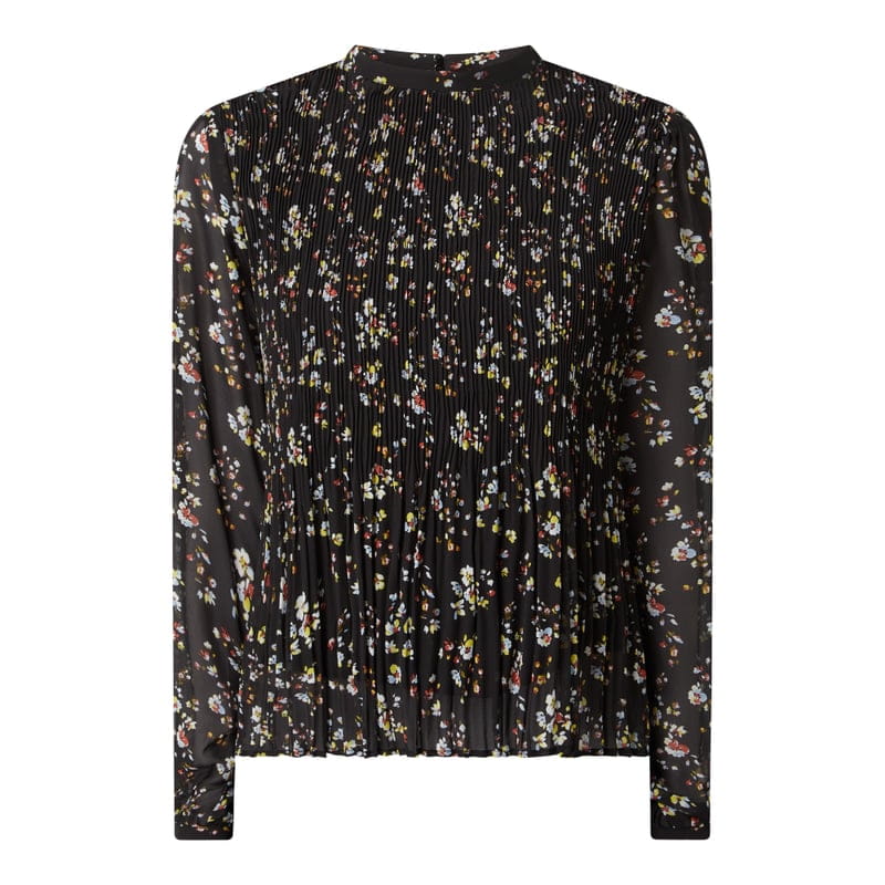 Bluzka damska VILA , Lekki materiał , Luźny krój, Kwiatowy wzór , Okrągły dekolt , Długie rękawy, Plisy , Wycięcie w kształcie łezki z tyłu , Długość tyłu w rozmiarze 36: 60 cm, Długość rękawa w rozmiarze 36: 61 cm