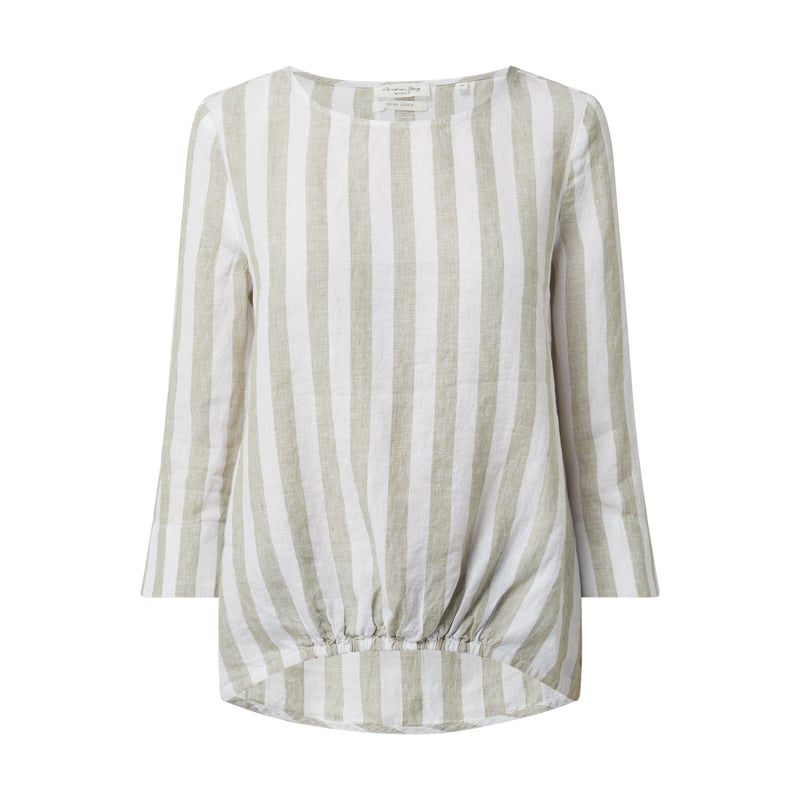 Bluzka damska Christian Berg Women, Czysty len , Luźny krój , Wzór w paski , Okrągły dekolt , Rękaw o dł. 7/8 , Gumka na dole , Długość tyłu w rozmiarze 36: 66,5 cm