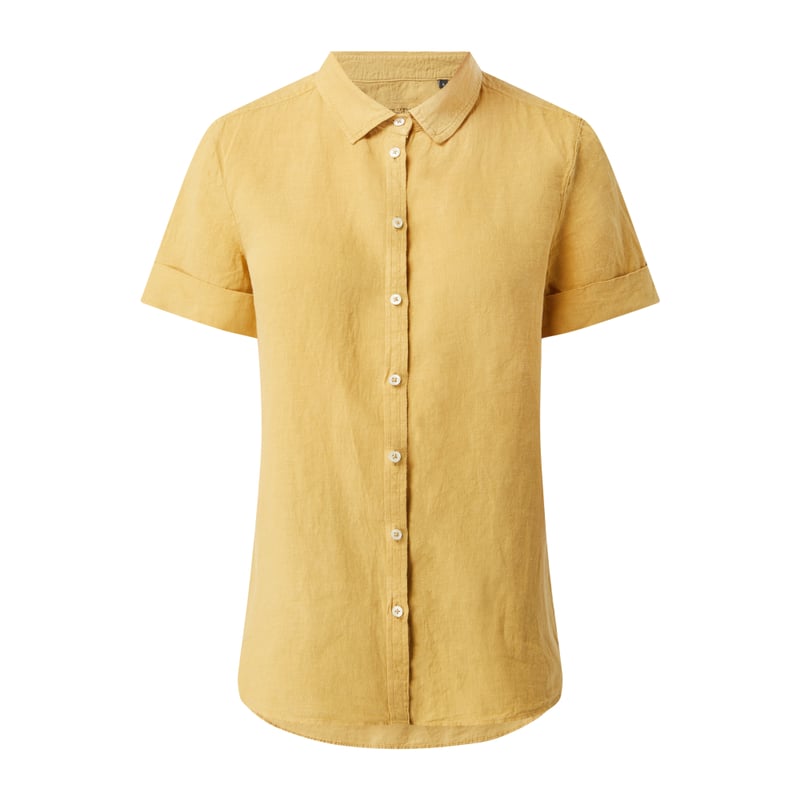 Bluzka damska MARC O’POLO, Mieszanka lnu i bawełny , Prosty krój , Wykładany kołnierz, Listwa guzikowa , Krótkie rękawy , Kontrafałda z tyłu , Długość tyłu w rozmiarze 36: 69 cm