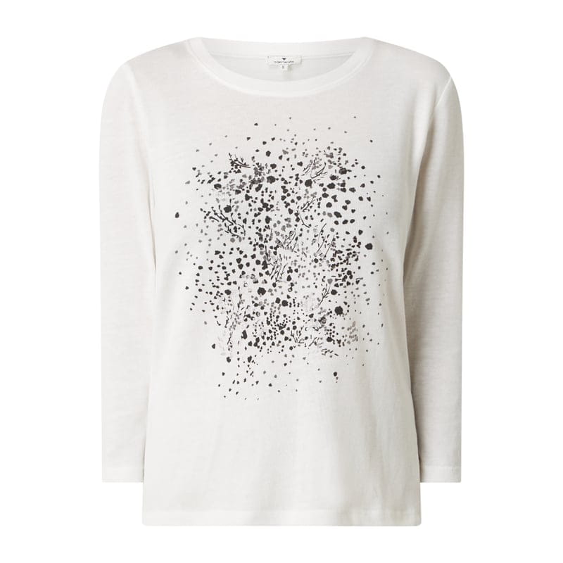 Bluzka damska TOM TAILOR , Mieszanka materiałów z dodatkiem bawełny , Luźny krój, Okrągły dekolt , Rękaw o dł. 3/4 , Nadruk , Długość tyłu w rozmiarze S: 60 cm, Długość rękawa w rozmiarze S: 48 cm