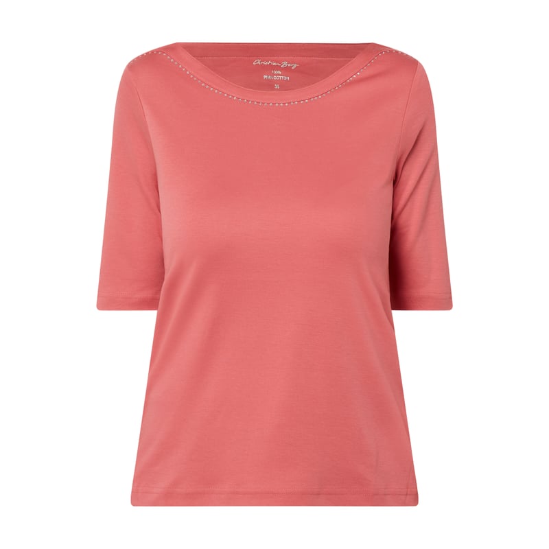 Bluzka damska Christian Berg Women, Czysta bawełna , Taliowany krój, Okrągły dekolt z obszyciem nitami , Rękaw o dł. 1/2 , Długość tyłu w rozmiarze 36: 54 cm
