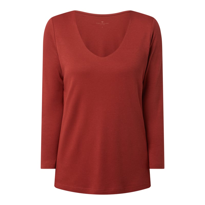 Bluzka damska TOM TAILOR, Mieszanka bawełny i modalu, Taliowany krój, Okrągły dekolt, Rękaw o dł. 3/4, Długość tyłu w rozmiarze S: 64 cm