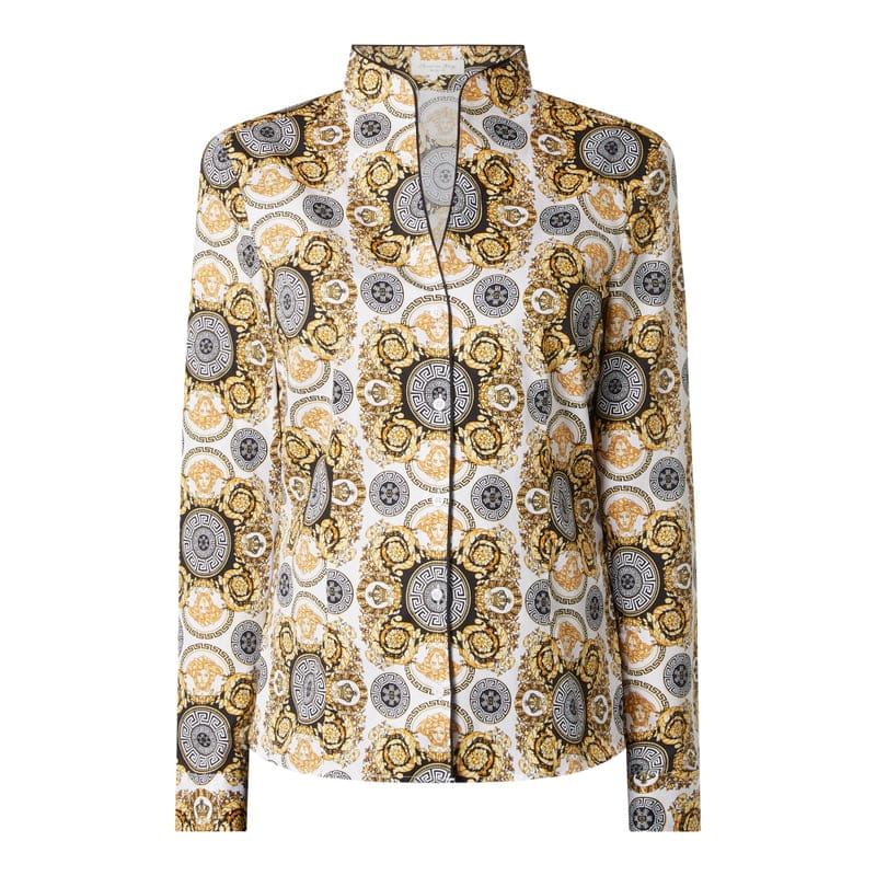 Bluzka damska Christian Berg Women, Czysta bawełna , Taliowany krój , Wzór ornamentalny , Spiczasty dekolt ze stójką , Listwa guzikowa , Mankiety zapinane na 1 guzik , Długość tyłu w rozmiarze 36: 62 cm , Długość rękawa w rozmiarze 36: 61 cm