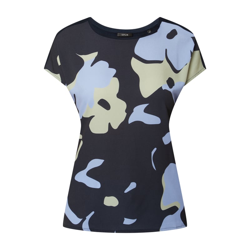 Bluzka damska OPUS, Czysta wiskoza , Luźny krój , Przód w kontrastowym kolorze z wzorem na całej powierzchni, Okrągły dekolt , Krótkie, ukośnie skrojone rękawy , Długość tyłu w rozmiarze 36: 61 cm