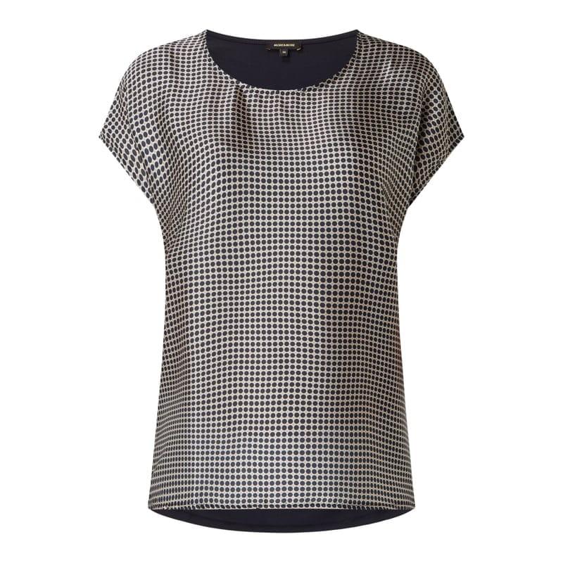 Bluzka damska MORE & MORE, Mieszanka wiskozy i elastanu, Prosty krój, Przód w kontrastowym kolorze z wzorem na całej powierzchni, Okrągły dekolt, Krótkie, ukośnie skrojone rękawy, Długość tyłu w rozmiarze 36: 62 cm