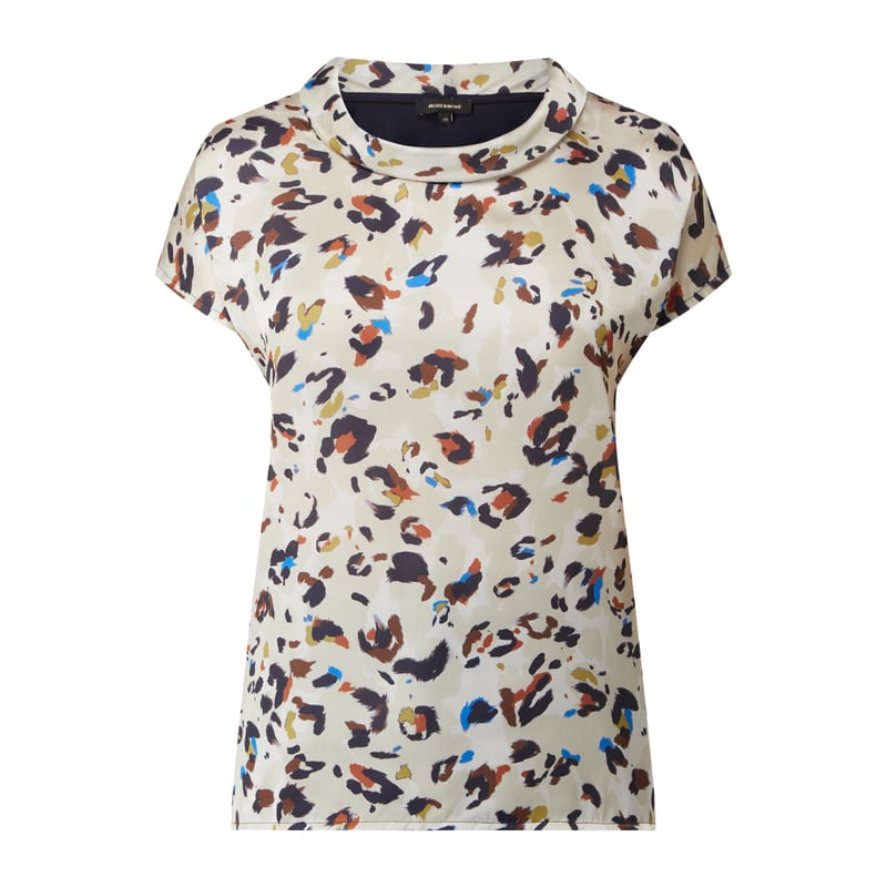Bluzka damska MORE & MORE, Mieszanka wiskozy i elastanu, Prosty krój, Przód w kontrastowym kolorze w panterkę, Wywijany kołnierz, Krótkie, ukośnie skrojone rękawy, Długość tyłu w rozmiarze 36: 57 cm