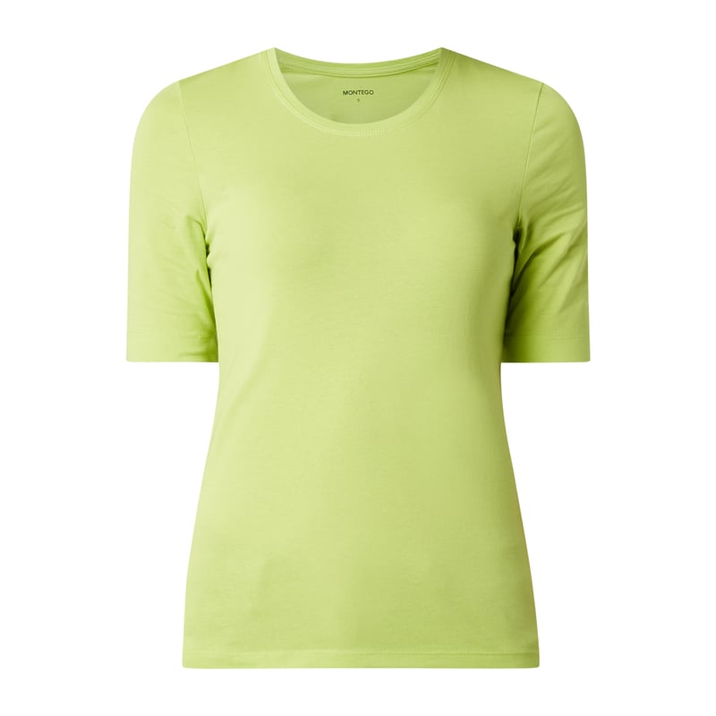 Bluzka damska MONTEGO, Mieszanka bawełny i elastanu , Lekko taliowany krój , Okrągły dekolt , Rękaw o dł. 1/2, Długość tyłu w rozmiarze S: 58,5 cm