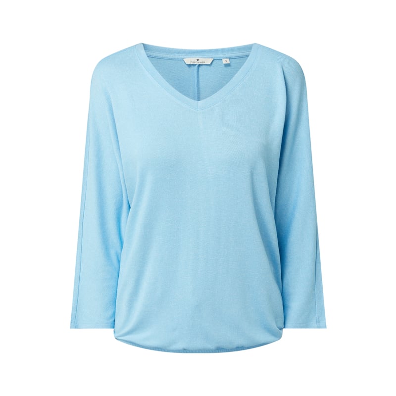 Bluzka damska TOM TAILOR , Mieszanka wiskozy z dodatkiem streczu , Luźny krój, Dekolt w serek , Ukośnie skrojone rękawy 3/4 , Szew działowy , Długość tyłu w rozmiarze S: 61 cm