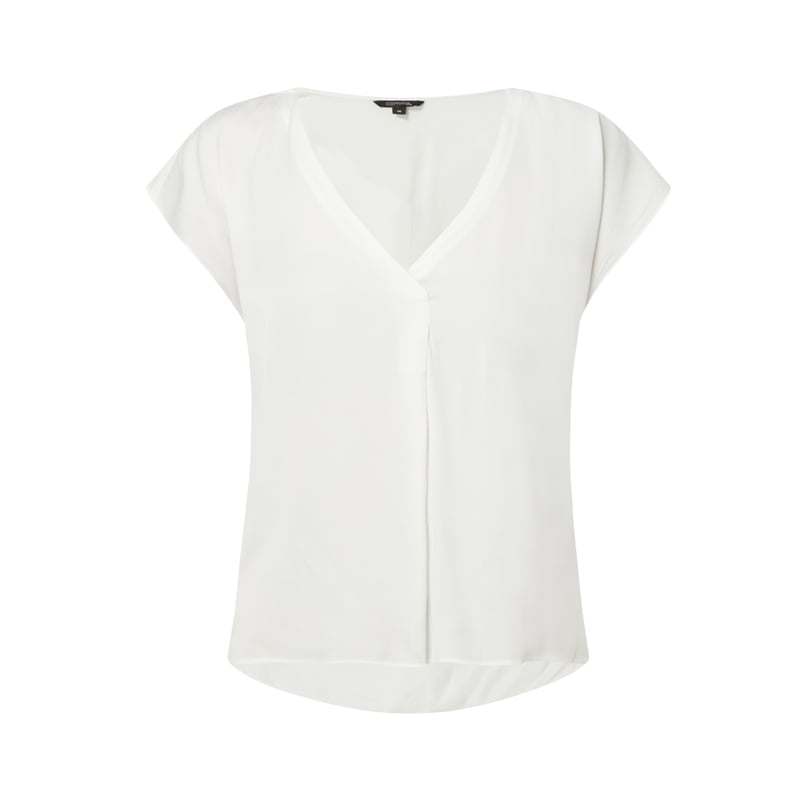 Bluzka damska comma , Mieszanka materiałów z dodatkiem wiskozy , Taliowany krój , Satyna , Dekolt w serek z drapowaniem , Ukośnie skrojone rękawy , Kontrafałda , Długość tyłu w rozmiarze 36: 65,5 cm
