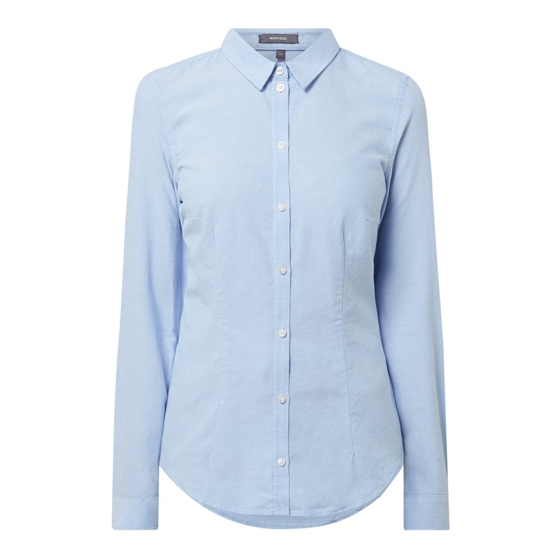 Bluzka damska MONTEGO , Czysta bawełna , Taliowany krój, Oxford , Wykładany kołnierz , Listwa guzikowa , Długie rękawy z mankietami zapinanymi na 1 guzik , Długość tyłu w rozmiarze 36: 64 cm, Długość rękawa w rozmiarze 36: 61 cm