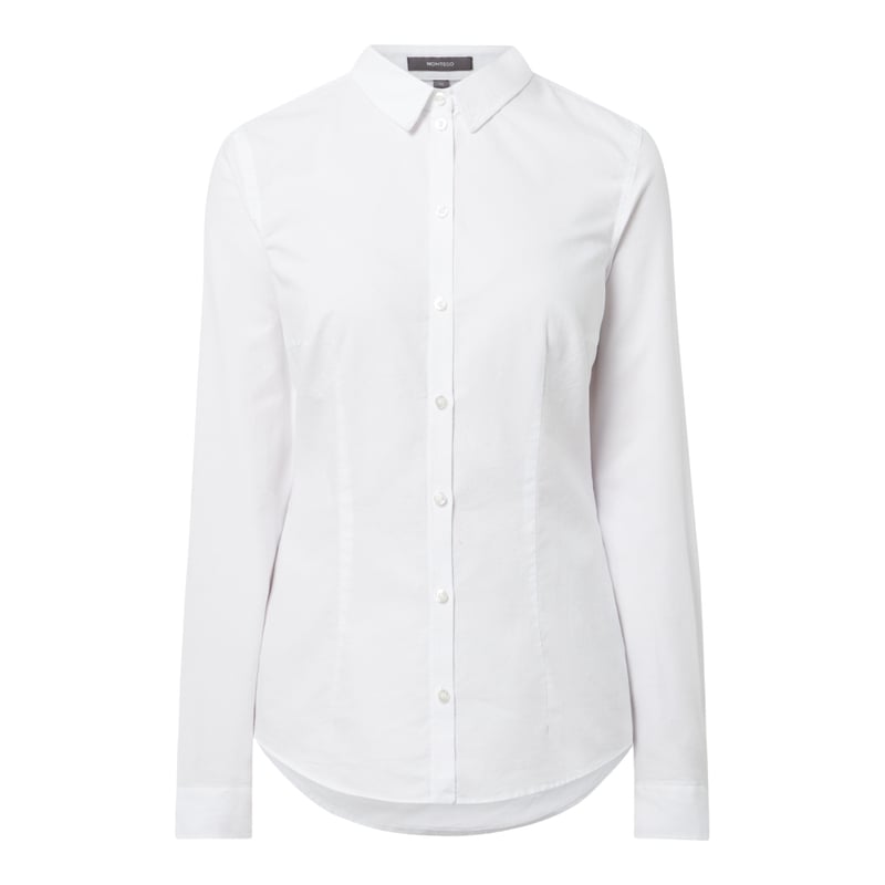 Bluzka damska MONTEGO , Czysta bawełna , Taliowany krój, Oxford , Wykładany kołnierz , Listwa guzikowa , Długie rękawy z mankietami zapinanymi na 1 guzik , Długość tyłu w rozmiarze 36: 64 cm, Długość rękawa w rozmiarze 36: 61 cm