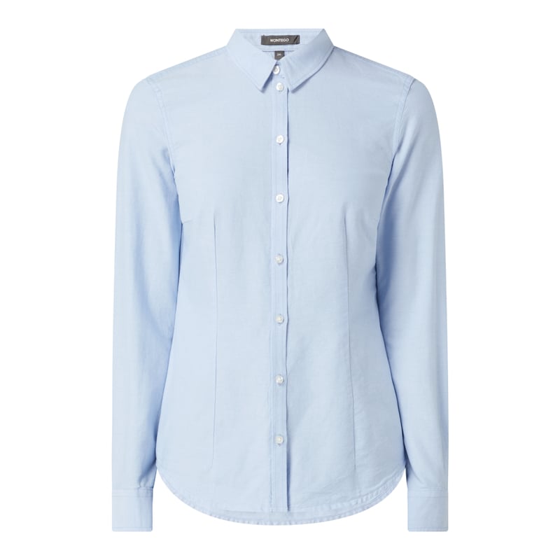 Bluzka damska MONTEGO , Czysta bawełna , Taliowany krój , Oxford , Wykładany kołnierz , Nakładana listwa guzikowa , Mankiety zapinane na 1 guzik , Szwy działowe , Długość tyłu w rozmiarze 36: 62 cm, Długość rękawa w rozmiarze 36: 62 cm