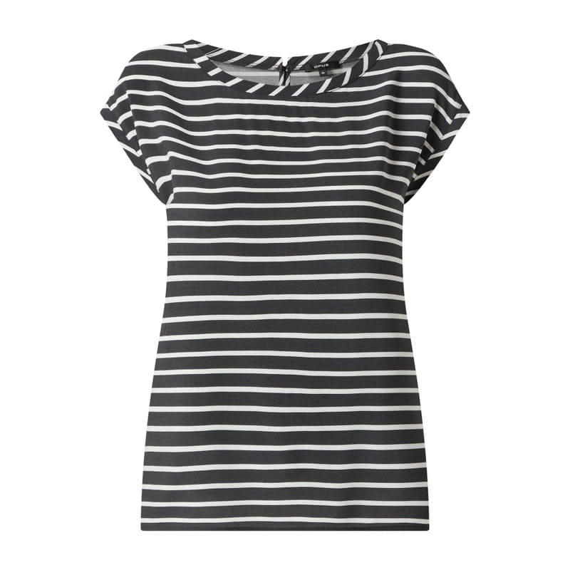 Bluzka damska OPUS , Czysta wiskoza , Luźny krój , Wzór w paski , Okrągły dekolt , Krótkie, ukośnie skrojone rękawy z przeszytą zakładką , Listwa guzikowa z tyłu , Długość tyłu w rozmiarze 36: 57 cm
