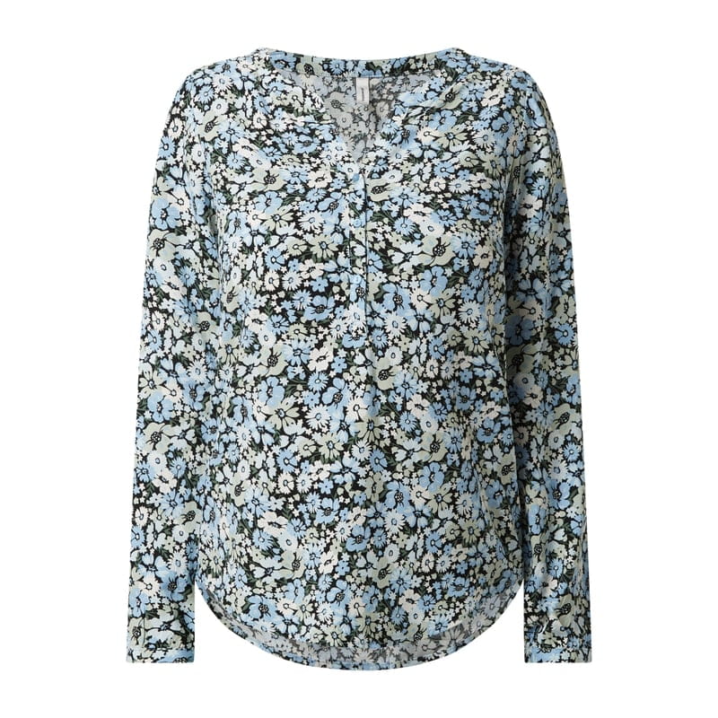 Bluzka damska soyaconcept, Czysta wiskoza, Taliowany krój, Kwiatowy wzór, Kołnierz z lamówką, Krótka listwa guzikowa, Długie rękawy, Długość tyłu w rozmiarze S: 68 cm, Długość rękawa w rozmiarze S: 61 cm