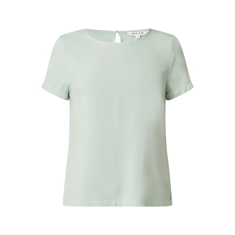 Bluzka damska REVIEW, Czysta wiskoza , Prosty krój , Okrągły dekolt , Krótkie rękawy z przeszytą zakładką , Wycięcie w kształcie łezki zapinane na guzik z tyłu , Długość tyłu w rozmiarze S: 55 cm
