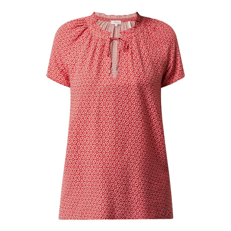 Bluzka damska s.Oliver RED LABEL, Czysta wiskoza, Luźny krój, Wzór na całej powierzchni, Falbaniasta stójka, Wiązane wycięcie w kształcie łezki , Krótkie rękawy raglanowe, Długość tyłu w rozmiarze 36: 64 cm