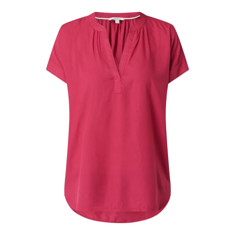 Bluzka damska Esprit , Czysta wiskoza (LENZING™ ECOVERO™), Prosty krój, Kołnierz z lamówką, Krótkie, ukośnie skrojone rękawy , Marszczenia, Długość tyłu w rozmiarze 36: 64 cm