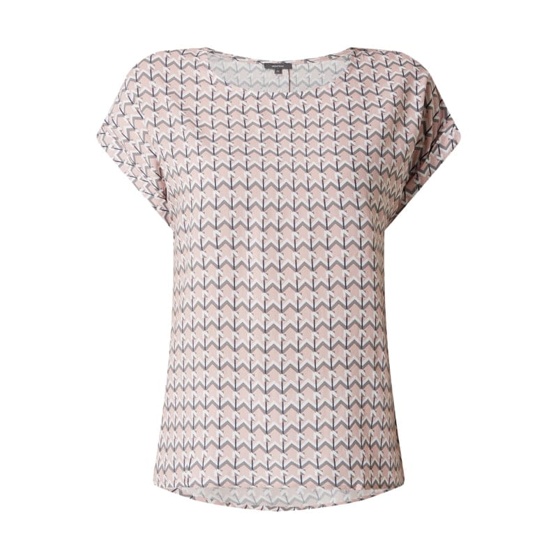 Bluzka damska MONTEGO, Czysta wiskoza, Prosty krój , Wzór graficzny , Okrągły dekolt , Krótkie rękawy z przeszytą zakładką , Długość tyłu w rozmiarze 36: 69 cm