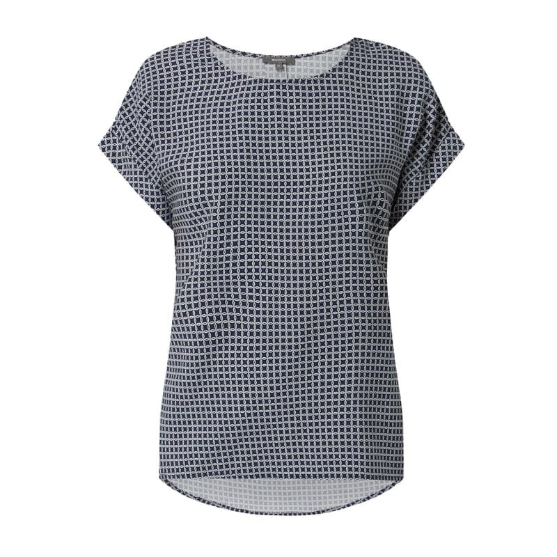 Bluzka damska MONTEGO, Czysta wiskoza, Taliowany krój, Wzór na całej powierzchni, Okrągły dekolt, Krótkie, ukośnie skrojone rękawy z przeszytą zakładką, Kontrafałda z tyłu, Długość tyłu w rozmiarze 36: 66 cm