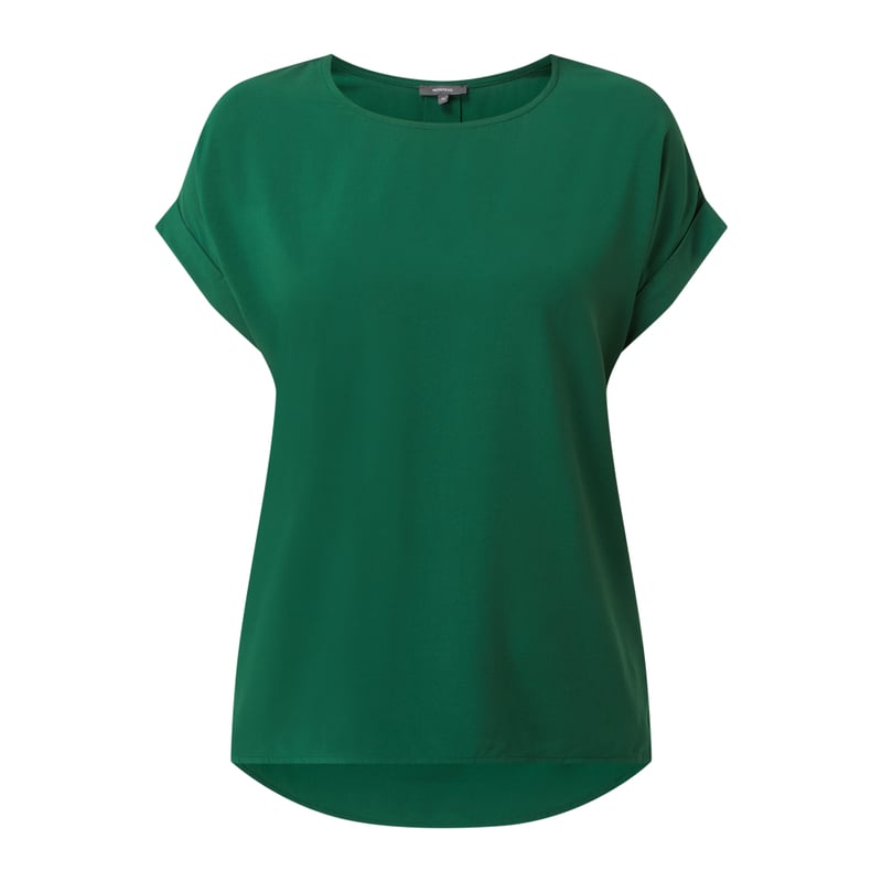 Bluzka damska MONTEGO, Czysta wiskoza , Luźny krój , Okrągły dekolt , Krótkie, ukośnie skrojone rękawy z przeszytą zakładką , Kontrafałda z tyłu , Lekko wydłużony tył, Długość tyłu w rozmiarze 36: 64 cm