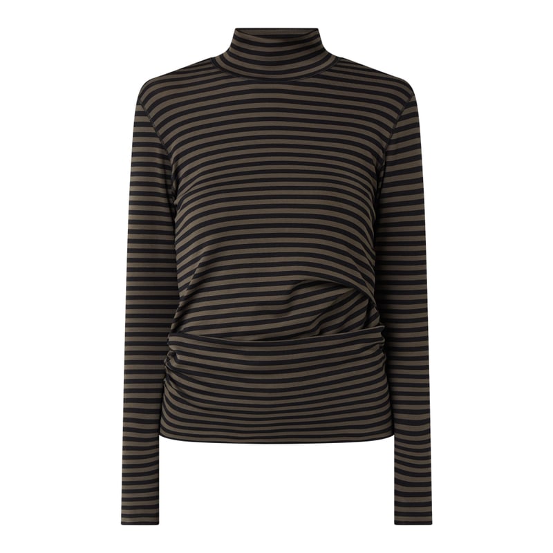 Bluzka damska Marc Cain Collections, Mieszanka bawełny i elastanu , Prosty krój , Wzór w paski , Wywijany kołnierz, Długie rękawy , Długość tyłu w rozmiarze 36: 59 cm, Długość rękawa w rozmiarze 36: 59 cm