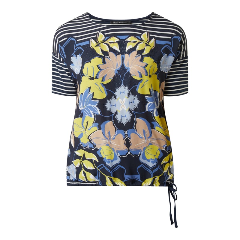 Bluzka damska Betty Barclay, Mieszanka wiskozy i elastanu , Taliowany krój , Wzór w paski , Okrągły dekolt , Obniżone ramiona , Rękaw o dł. 3/4 , Kamienie stras , Elastyczny dół z tunelem, Długość tyłu w rozmiarze 36: 57 cm