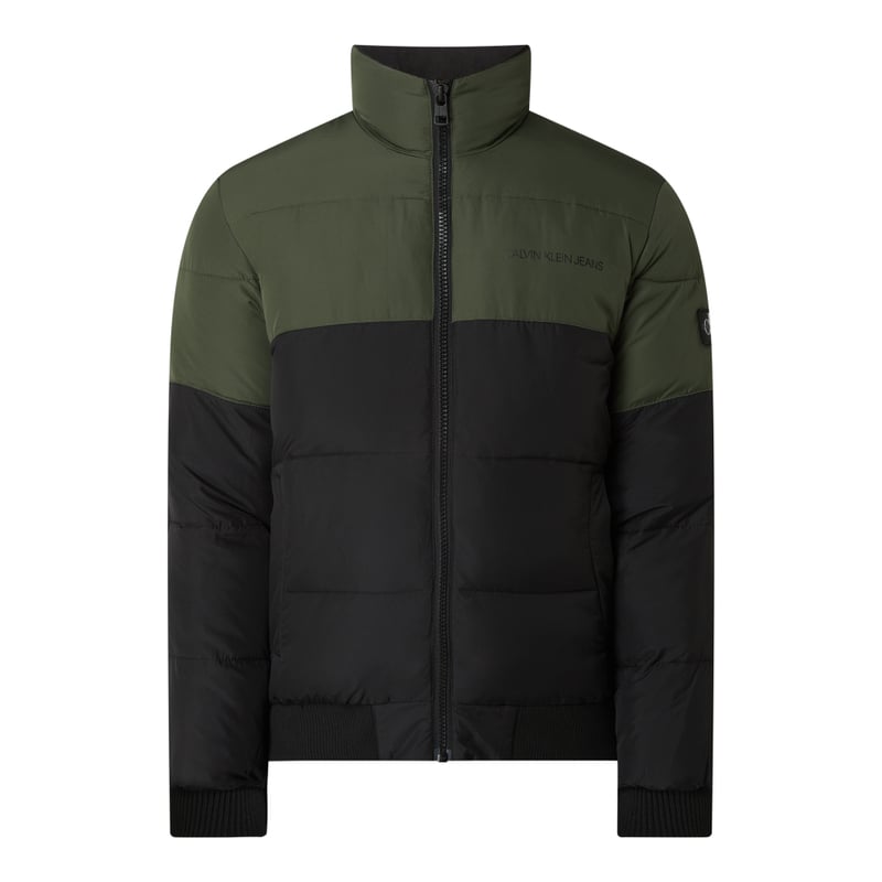 Bluzon pikowany męski Calvin Klein Jeans, Wytrzymały materiał , Prosty krój , Dwukolorowy design, Stójka z podszewką z flauszu, Zamek błyskawiczny , Nadruk z logo na wysokości piersi , Wpuszczane kieszenie z zatrzaskiem , Plakietka z logo na rękawie , Prążkowane ściągacze na rękawach i na dole , Watowanie, Długość tyłu w rozmiarze M: 66,5 cm , Szerokość ramion w rozmiarze M: 47 cm , Długość rękawa w rozmiarze M: 66 cm