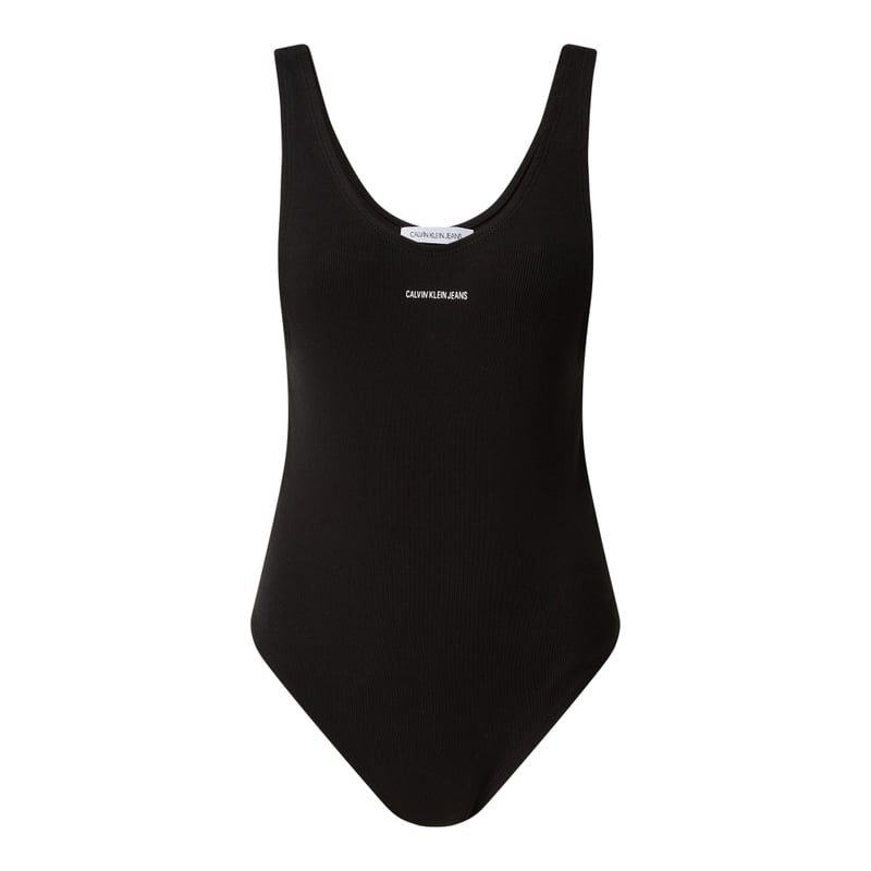 Body damskie Calvin Klein Jeans, Mieszanka bawełny i elastanu , Dopasowany krój , Okrągły dekolt , Szerokie ramiączka , Nadruk z logo , Długość tyłu w rozmiarze S: 69,5 cm