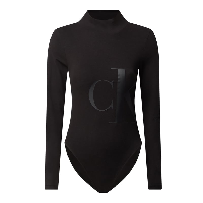 Body damskie Calvin Klein Jeans, Bawełna z dodatkiem bawełny ekologicznej i streczu, Dopasowany krój , Stójka, Długie rękawy , Dół z zatrzaskami, Nadruk z logo , Długość tyłu w rozmiarze S: 65 cm, Długość rękawa w rozmiarze S: 61 cm