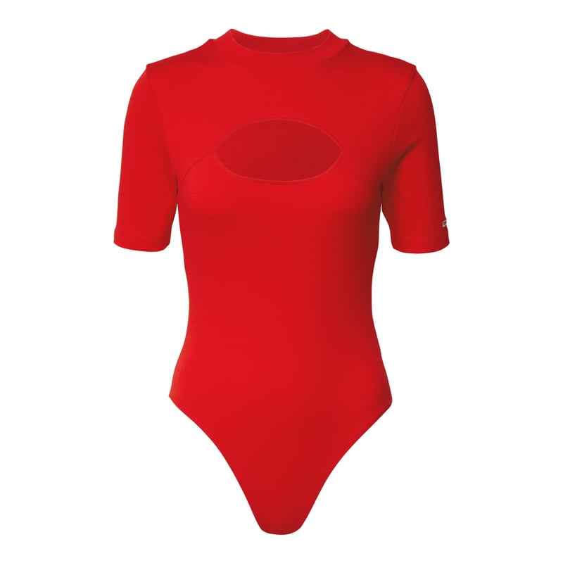 Body damskie Tommy Jeans, Czysta bawełna, Dopasowany krój, Stójka, Wycięcie, Detale z logo, Zapięcie na zatrzask, Długość tyłu w rozmiarze S: 66 cm