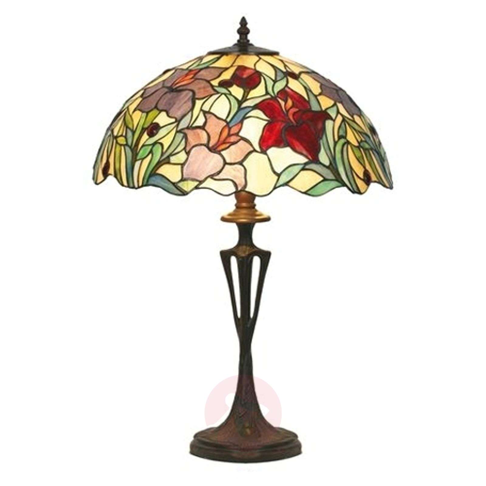 Klasyczna lampa stołowa ATHINA z ręcznie wykonanym szklanym kloszem Szklany klosz lampy stołowej ATHINA, wykonany ręcznie w stylu Tiffany, rozświetla pomieszczenie niczym wspaniały bukiet kwiatów. Emituje ciepłe i równomierne światło w pomieszczeniu, również wyłączona wygląda bardzo dekoracyjnie. Lampa sprawdzi się szczególnie dobrze w klasycznie urządzonych wnętrzach. Klasa efektywności energetycznej: A++