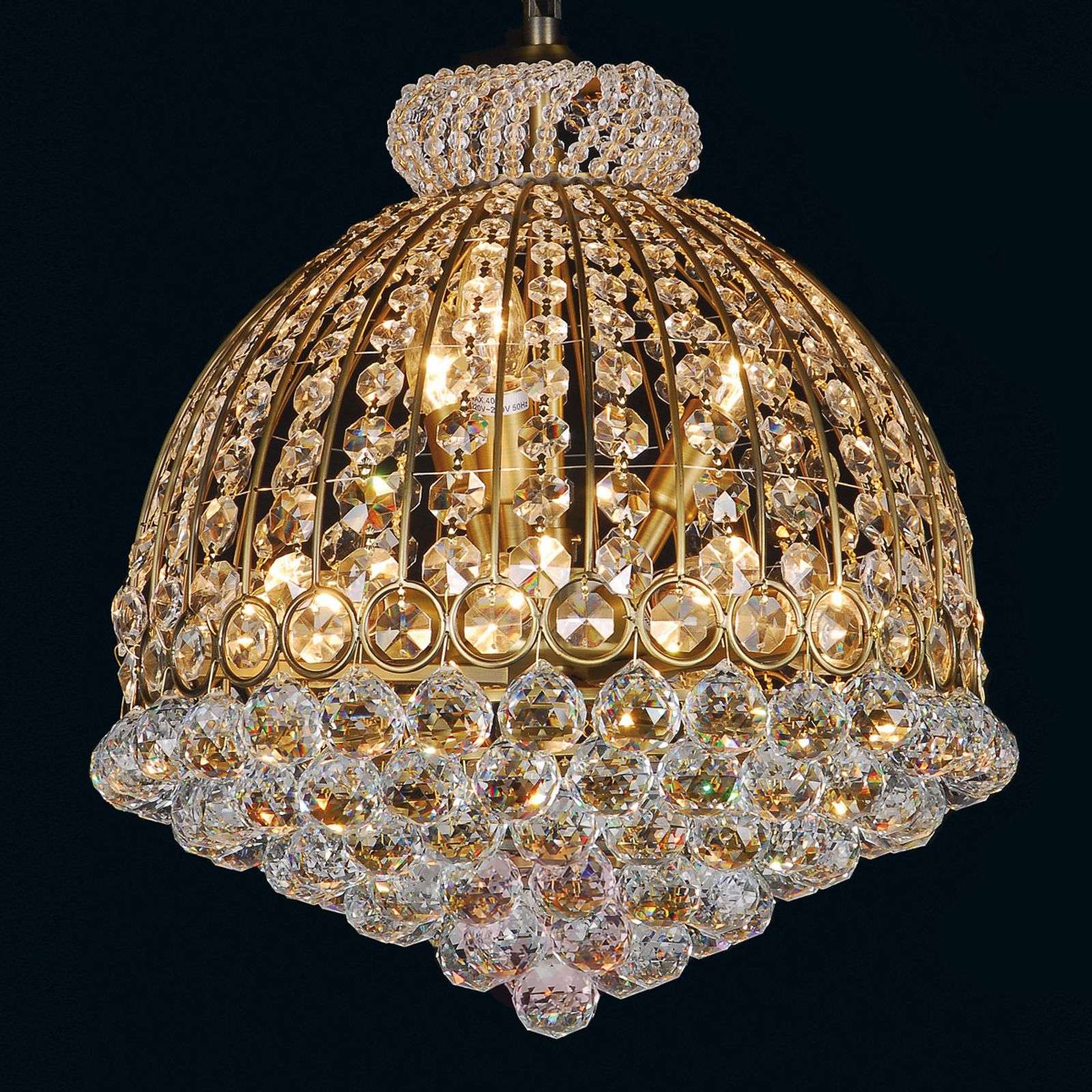 Iskrzący się kryształowy żyrandol Dora z dwunastoma źródłami światła Kulki z kryształowego szkła w różnych rozmiarach są główną cechą tego wspaniałego żyrandola. Korona żyrandola o klasycznym designie składa się z jednej strony z wielu zakrzywionych form, a z drugiej z pełnych przepychu zawieszek z misternie szlifowanego szkła kryształowego. Dwanaście żarówek jest częściowo widocznych w górnej części korony, częściowo ukrytych za kryształowymi zawieszkami, znajdującymi się w dolnej części żyrandola. Klasa efektywności energetycznej: A++