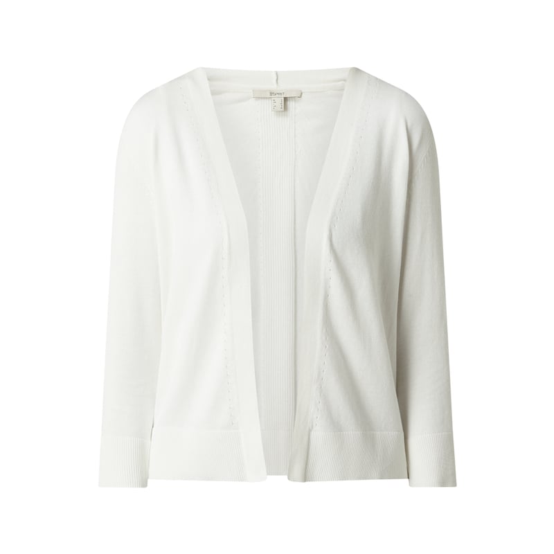 Bolerko damskie Esprit , Czysta bawełna ekologiczna, Prosty krój, Przód bez zapięcia, Rękaw o dł. 3/4, Prążkowane wykończenia, Długość tyłu w rozmiarze S: 54