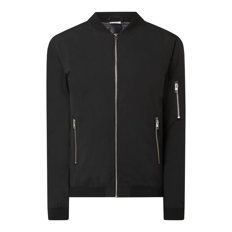 Bomberka męska JACK & JONES, Wytrzymały materiał, Prosty krój, Stójka, Zamek błyskawiczny, Kieszenie zapinane na zamek błyskawiczny, Prążkowane wykończenia, Lekka podszewka, Długość tyłu w rozmiarze M: 65 cm, Szerokość ramion w rozmiarze M: 45 cm, Długość rękawa w rozmiarze M: 66 cm