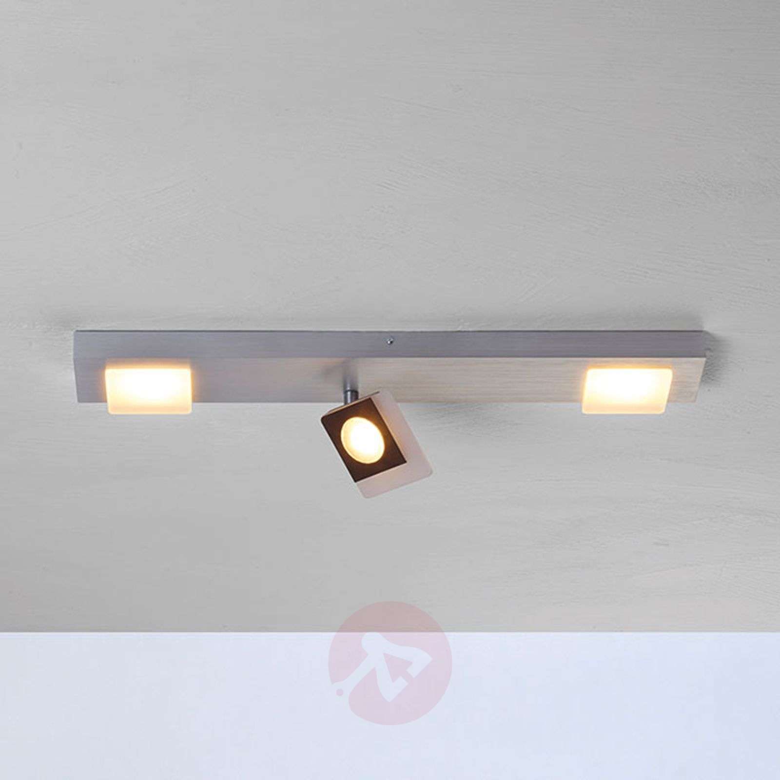 Lampa sufitowa LED Session z regulowanym spotem Nowoczesna lampa sufitowa Session firmy Bopp Leuchten przekonuje smukłą konstrukcją i połączeniem stałych i regulowanych źródeł światła. Płyta wykonana z wysokiej jakości aluminium tworzy korpus lampy, w którym z obu stron umieszczone są dwie wysoce wydajne diody LED. Tworzą one oświetlenie ogólne i są wspaniale uzupełnione przez mały spot LED, który jest zamontowany pośrodku i może być odchylany i obracany. Oprócz oświetlenia ogólnego, regulacja ta pozwala również na selektywne ukierunkowanie światła o barwie ciepłej bieli. Wszystkie trzy diody LED można ponadto ściemniać. Lampa sufitowa LED Session jest zatem idealnym oświetleniem dla wszystkich pomieszczeń mieszkalnych - salonu, korytarza czy gabinetu. Dzięki skromnemu wzornictwu bez trudu dopasowuje się do wielu stylów wyposażenia wnętrz i przekonuje jakością, światłem i wyglądem. Lampa sufitowa LED Session jest produkowana w Niemczech. Klasa efektywności energetycznej: A+