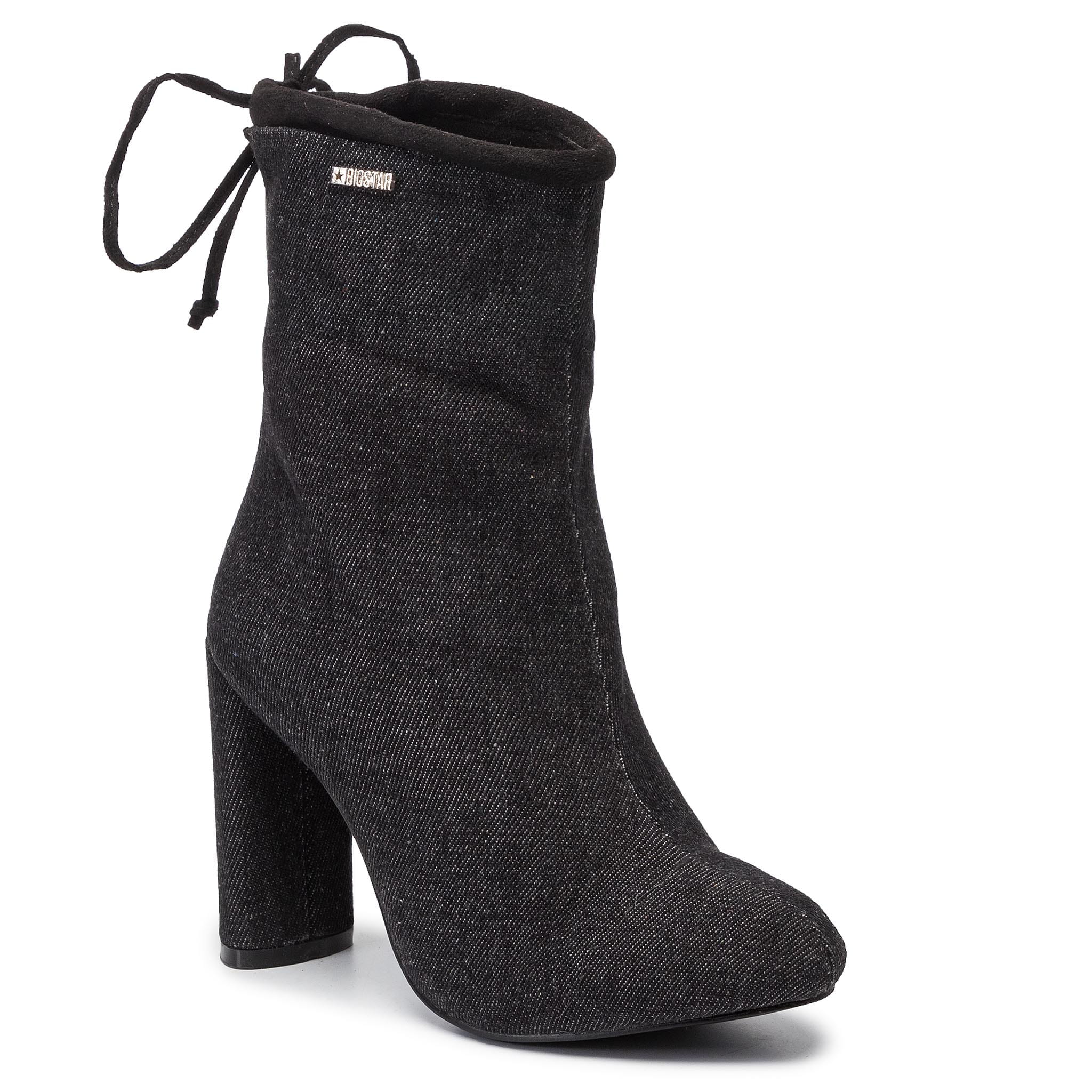 Wygodne botki marki BIG STAR. Przyjemnie układająca się na stopie cholewka to Materiał - Materiał. Zgrabniejszy wygląd zyskują dzięki obcasom o wysokości 9,5 cm. Wewnętrzna wyściółka to materiał. Wkładka to skóra ekologiczna. Podeszwa izolująca, to wysokogatunkowe tworzywo. Idealne na chłodniejsze dni.