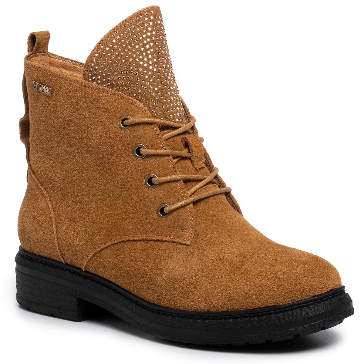 Nowość w propozycjach marki BIG STAR. Wierzchnią część butów tworzy Skóra naturalna - Zamsz. Całość opiera się na obcasie o wysokości 3,5 cm. We wnętrzu butów futerko, ocieplenie. Wkładka to futerko, ocieplenie. Podeszwa solidna, jej główny składnik to wysokogatunkowe tworzywo. Ozdobą fasonu jest detal: cyrkonie. Idealne na chłodniejsze dni.