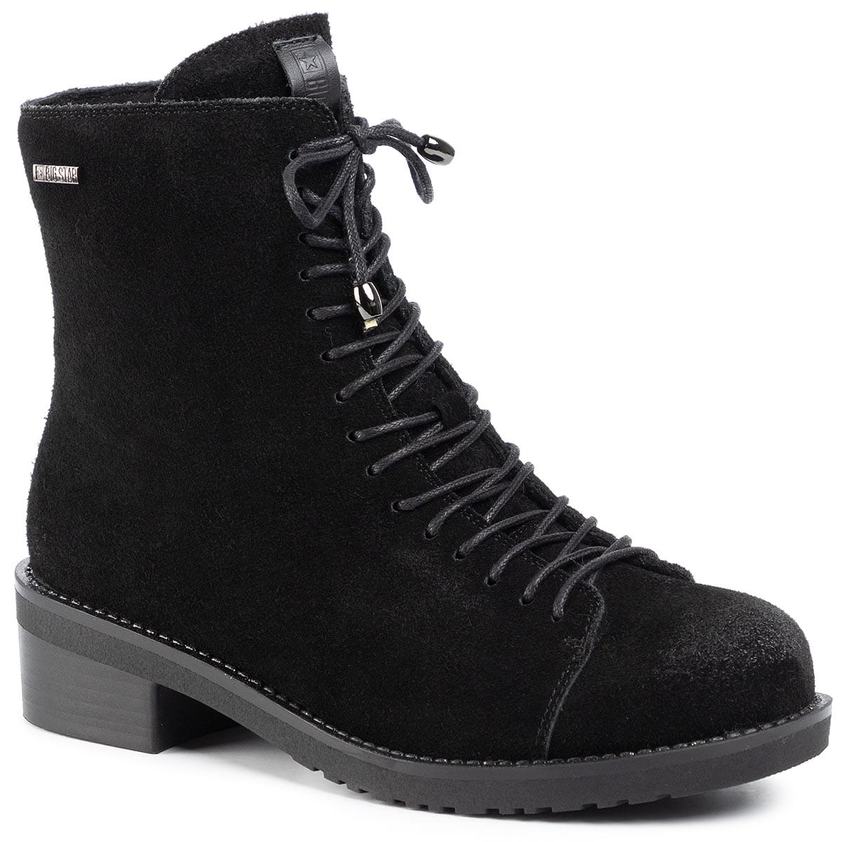 Wygodne botki marki BIG STAR. Wierzchnią część butów tworzy Skóra naturalna - Zamsz. Zgrabniejszy wygląd zyskują dzięki obcasom o wysokości 4,5 cm. We wnętrzu butów futerko, ocieplenie. Wkładka to futerko, ocieplenie. Trwała podeszwa to wysokogatunkowe tworzywo. Kobiecy fason, który sprawdzi się przy różnej pogodzie.