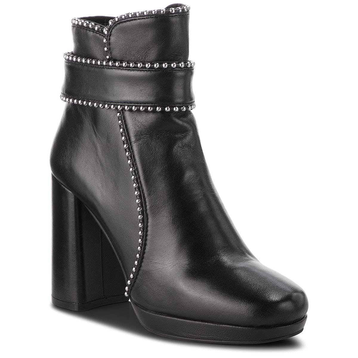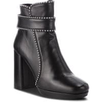 Wygodne botki marki Bruno Premi. Przyjemnie układająca się na stopie cholewka to Skóra naturalna - Licowa. Zgrabniejszy wygląd zyskują dzięki obcasom o wysokości 9,5 cm. We wnętrzu butów skóra. Wkładka to skóra. Podeszwa izolująca, to wysokogatunkowe tworzywo. Botki zyskują dzięki ozdobie: skóra naturalna, srebrny metal. Idealne na chłodniejsze dni.