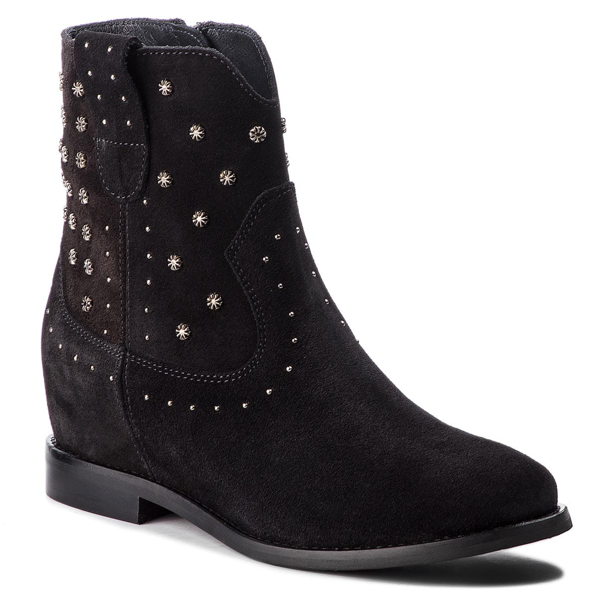 Wygodne botki marki Kanna. Przyjemnie układająca się na stopie cholewka to Skóra naturalna - Zamsz. Botki posiadają obcas o wysokości 2 cm. Wewnętrzna wyściółka to skóra. Wkładka to skóra. Podeszwa izolująca, to wysokogatunkowe tworzywo. Ozdobą fasonu jest detal: metal. Idealne na chłodniejsze dni.