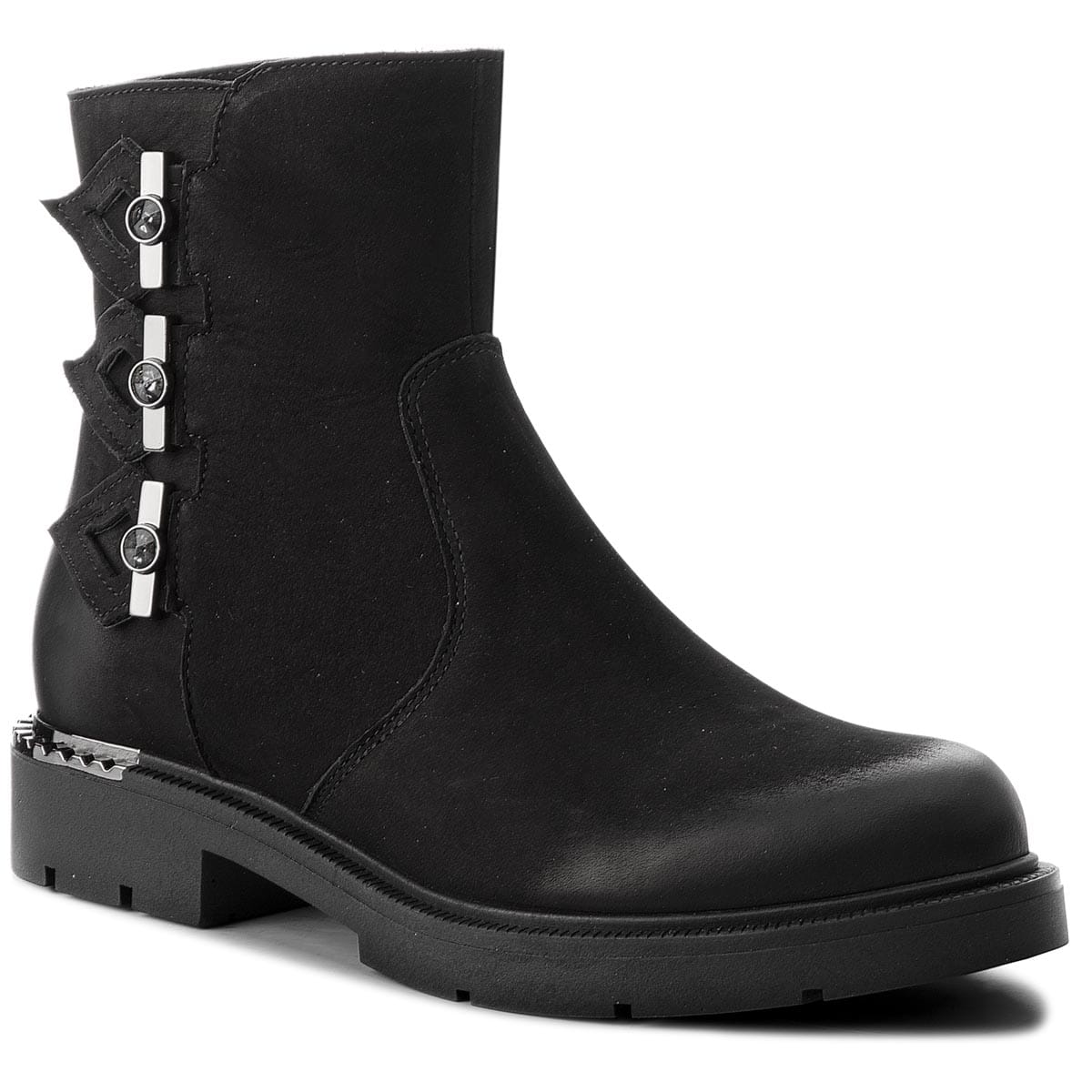 Zgrabne botki firmy R.Polański. Wierzchnią część butów tworzy Skóra naturalna - Licowa, Zamsz. Botki posiadają obcas o wysokości 3 cm. Wewnętrzna wyściółka to filc, ocieplenie, skóra ekologiczna. Komfort noszenia podnosi wkładka: filc, ocieplenie. Podeszwa izolująca, to wysokogatunkowe tworzywo. Charakteru dodaje butom ozdoba metal, skóra naturalna, cyrkonie. Kobiecy fason, który sprawdzi się przy różnej pogodzie.