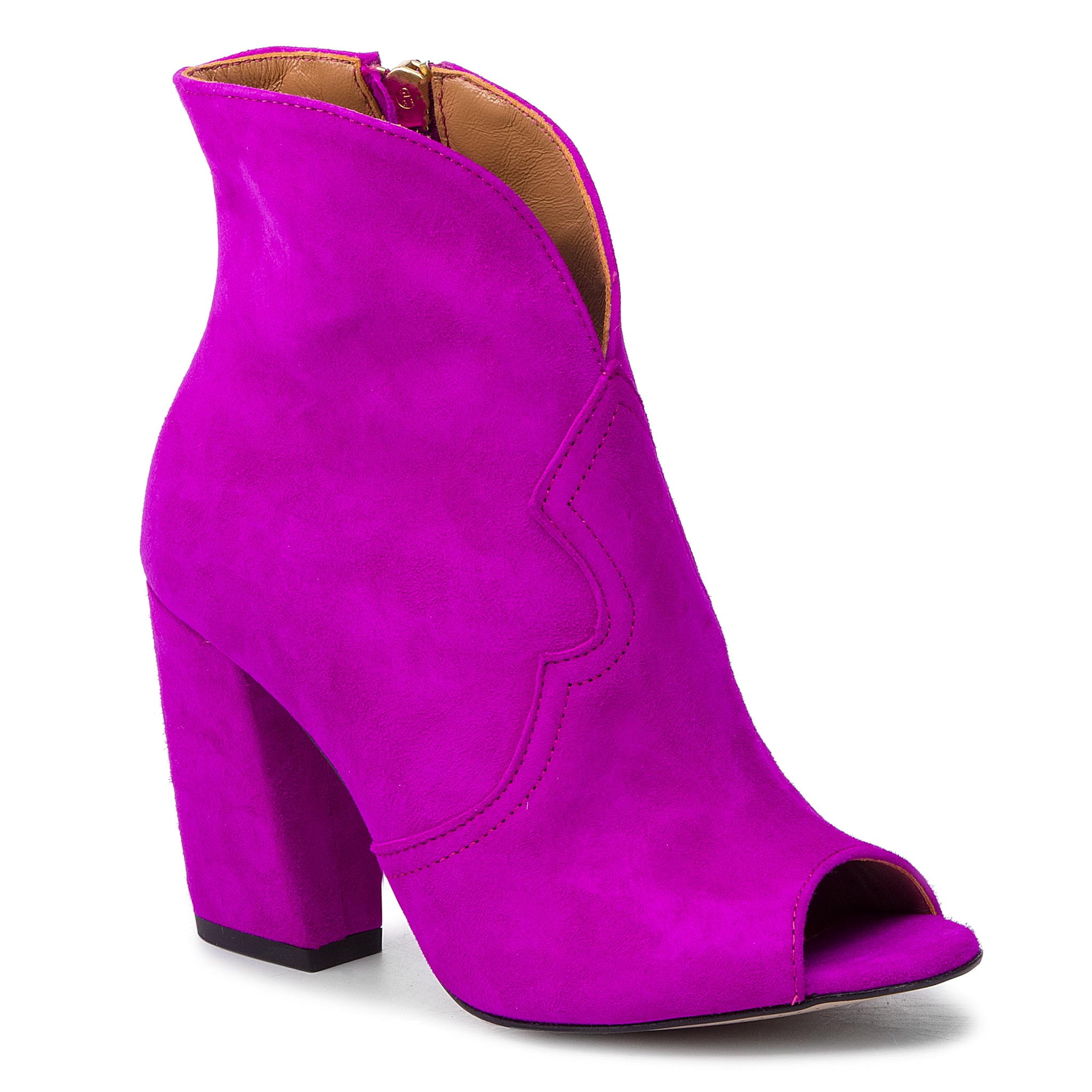 Wygodne botki marki R.Polański. Wierzchnią część butów tworzy Skóra naturalna - Zamsz. Botki posiadają obcas o wysokości 9 cm. We wnętrzu butów skóra. We wnętrzu butów znajduje się wkładka: skóra. Trwała podeszwa to wysokogatunkowe tworzywo. Idealne na chłodniejsze dni.