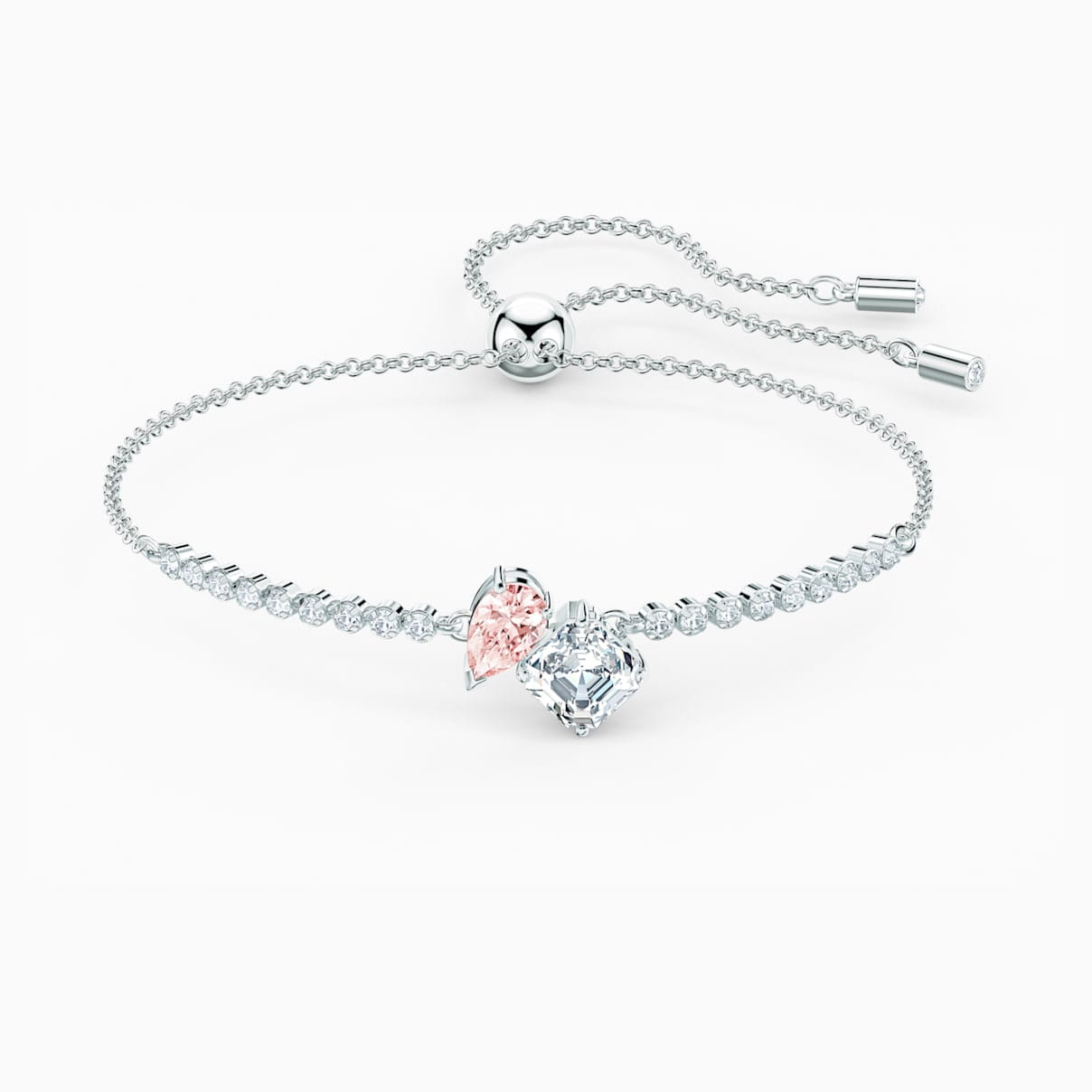 Ta powlekana rodem bransoletka Swarovski ozdobiona jest białym kamieniem w kształcie kwadratu oraz elementem w odcieniu delikatnego różu. Sposób, w jaki kamienie załamują padające na nie światło, oraz prosta, a jednocześnie elegancka konstrukcja tworzą efekt ponadczasowego stylu. Bransoletka stanowi idealny dodatek do innych elementów z naszej kolekcji Attraction Soul i będzie uroczym prezentem na specjalne okazje.